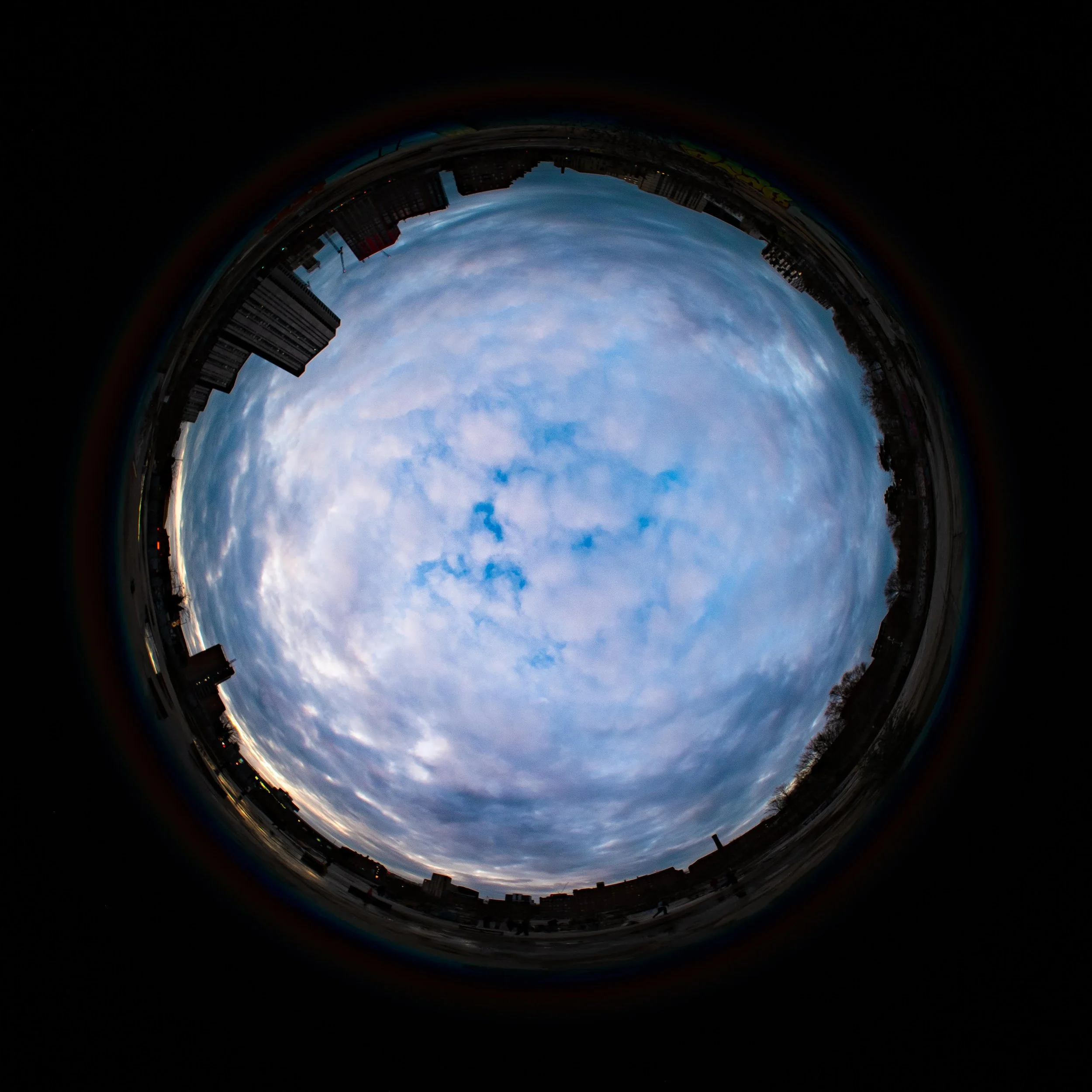 The visual elements focus on the warped characteristics of fish-eye angles. Particularly drawing from chromatic aberration: a lenses failure to focus all colours to the same point, made more pronounced on the edges of wide-angle fisheye lenses. Accentuating these ‘aberrations’ as a thematic focus of the video and installation through the filming and aligning the bold colour rings to the edges of the circular screen spilling into the installation space.